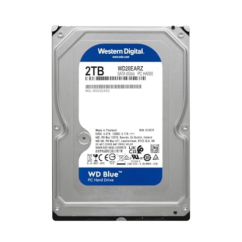 Western Digital Disco duro interno WD de 2 TB para PC, color azul, 5400 RPM, SATA 6 Gb/s, caché de 64 MB, 3.5 pulgadas, WD20EARZ (renovado)