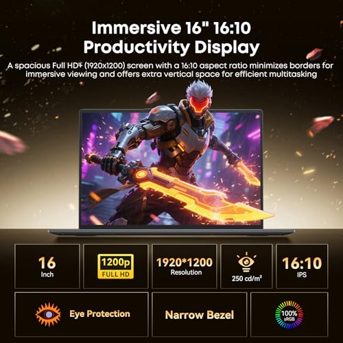 Win 11 Pro – Computadora portátil de 16 pulgadas, procesador Win 11 Pro, 16 GB de RAM, 512 GB SSD, pantalla FHD 16:10 de 1920 x 1200, portátil Office Suite con teclado retroiluminado, WiFi