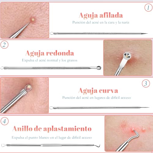 💟【Aplicación versátil】 — Este limpiador facial no solo es adecuado para el tratamiento del acné, sino también para eliminar puntos negros y limpiar la piel. Utilice una compresa de toalla tibia para abrir los poros. Elija la configuración correcta en el removedor de puntos negros. Eliminar el acné de la piel. (Para el acné cerrado, utilice el juego de agujas para puntos negros incluido). Limpie los poros mientras utiliza un producto para el cuidado de la piel que apriete los poros.
